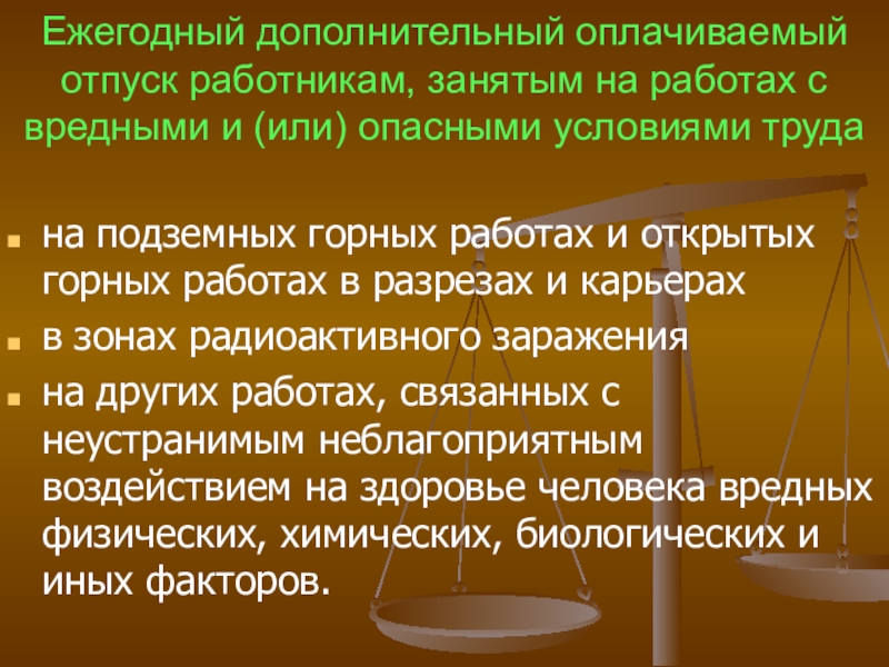 Ежегодный дополнительный оплачиваемый отпуск работникам, занятым на работах с вредными и