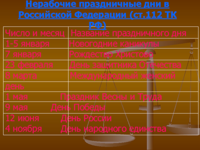 Российской Федерации (ст.112 ТК РФ)