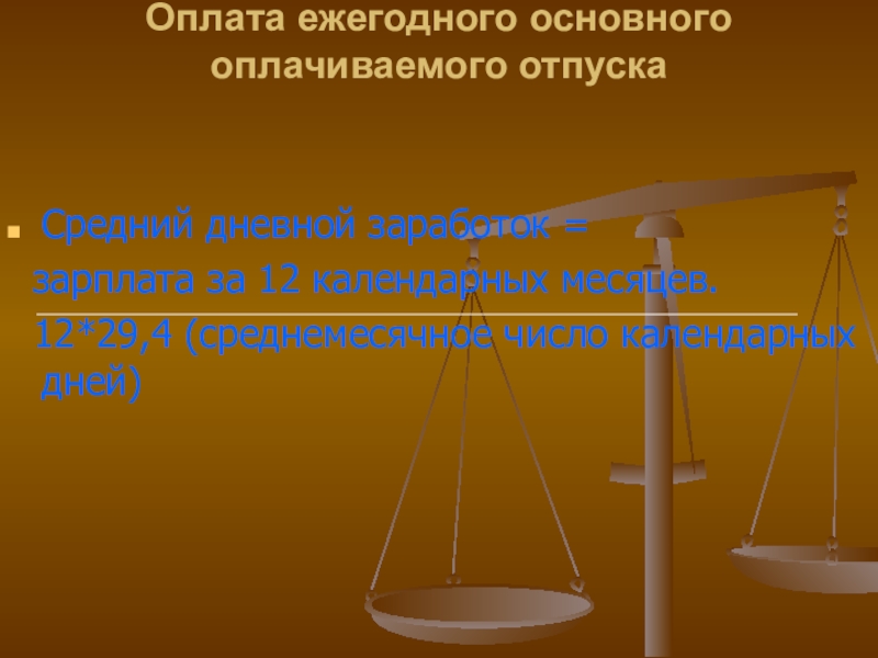 Слайд 17Оплата ежегодного основного оплачиваемого отпуска