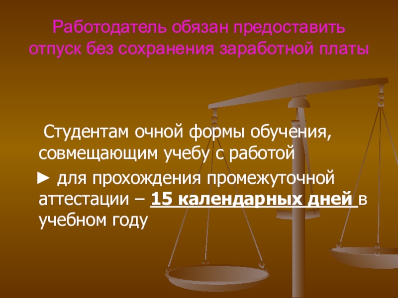 Слайд 49Работодатель обязан предоставить отпуск без сохранения заработной платы