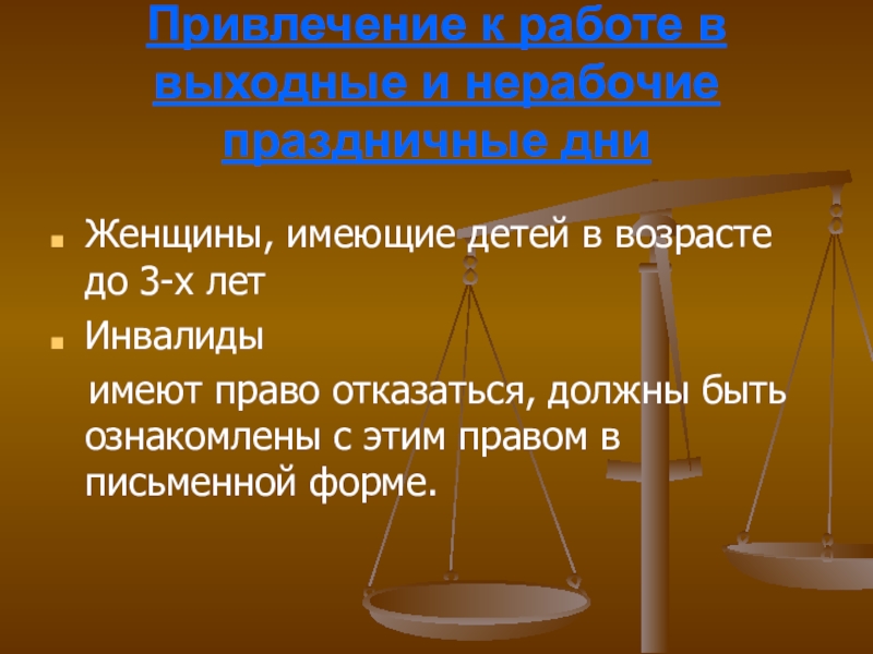 Слайд 14Привлечение к работе в выходные и нерабочие праздничные дни