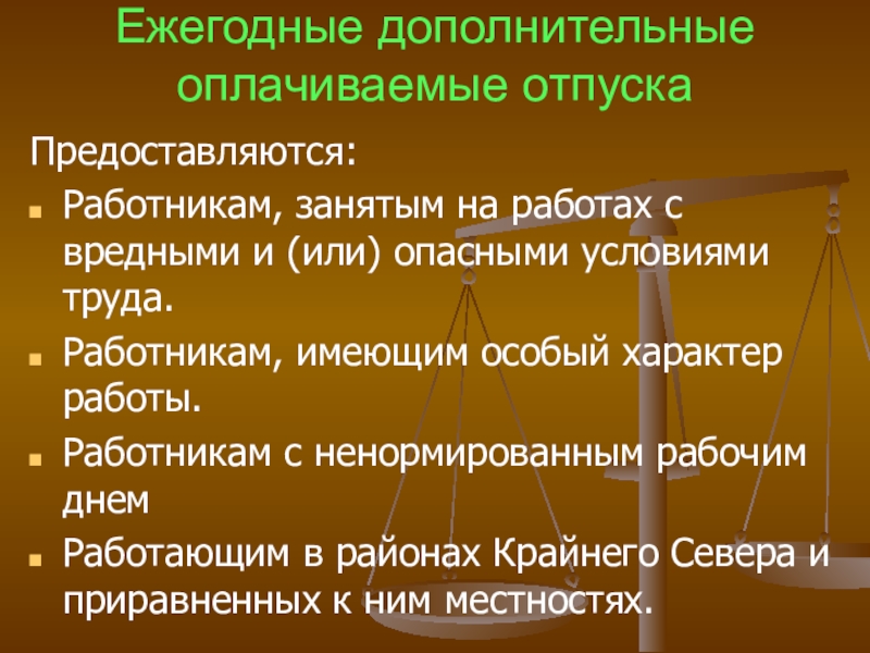 Слайд 34Ежегодные дополнительные оплачиваемые отпуска