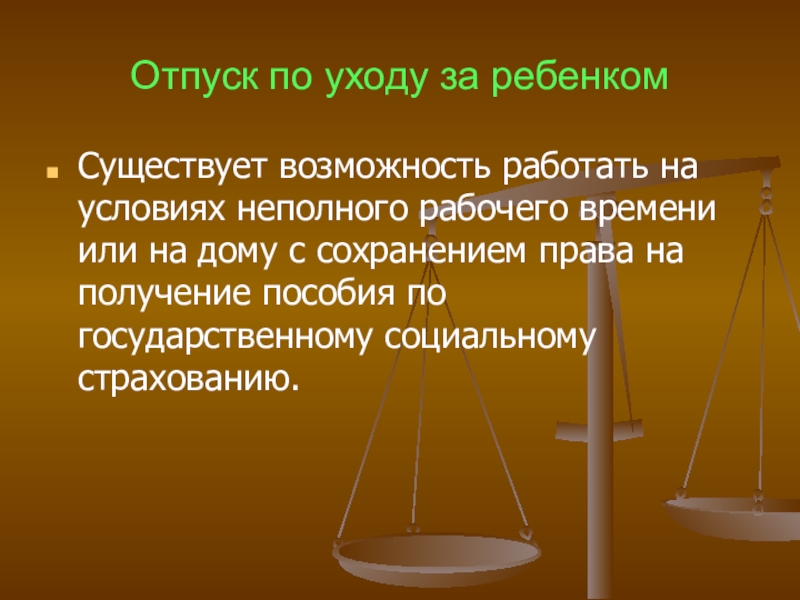 Слайд 43Отпуск по уходу за ребенком
