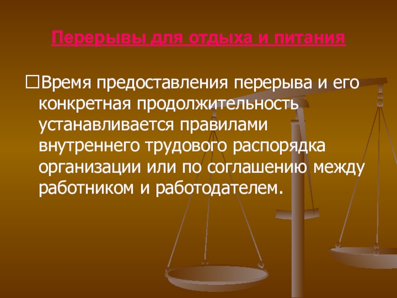 Слайд 4Перерывы для отдыха и питания
