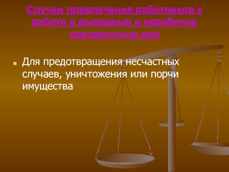 Слайд 10Случаи привлечения работников к работе в выходные и нерабочие праздничные дни