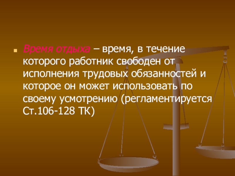 Время отдыха – время, в течение которого работник свободен от исполнения