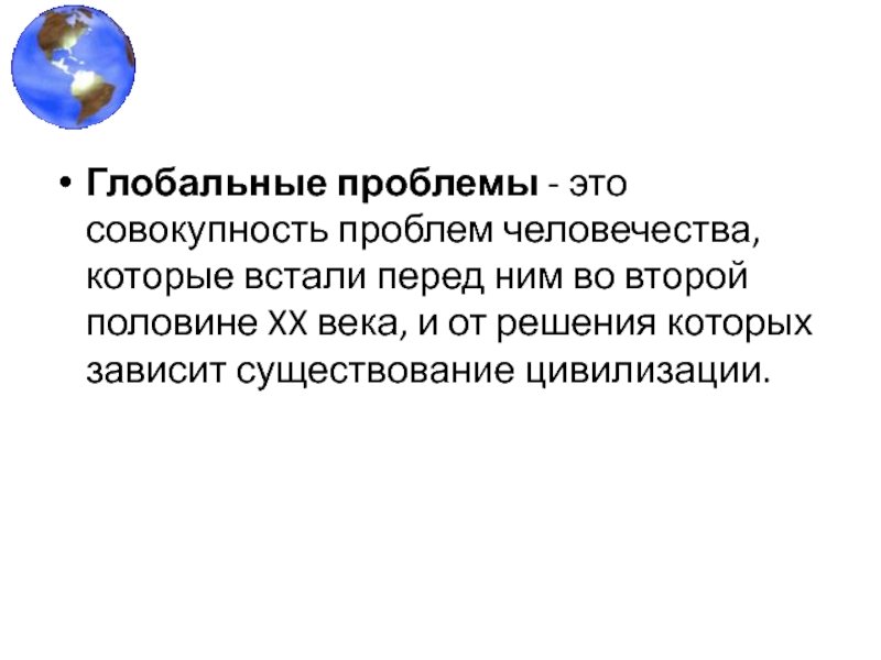 Глобальные проблемы - это совокупность проблем человечества, которые встали перед ним