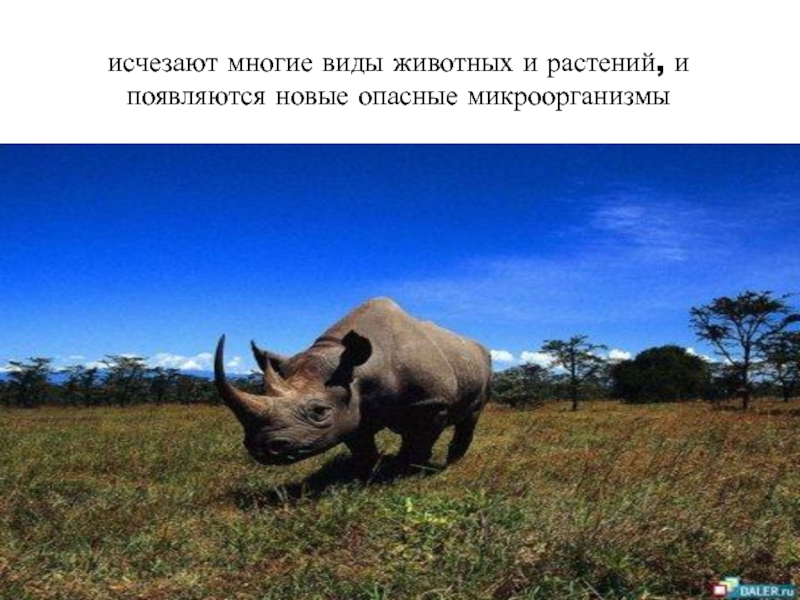 Слайд 23исчезают многие виды животных и растений, и появляются новые опасные микроорганизмы