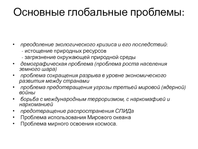 Слайд 5Основные глобальные проблемы: