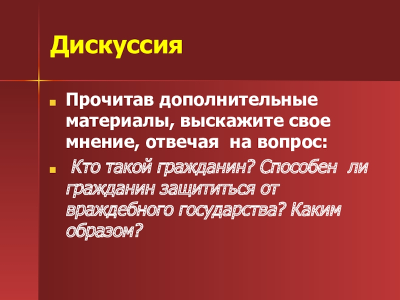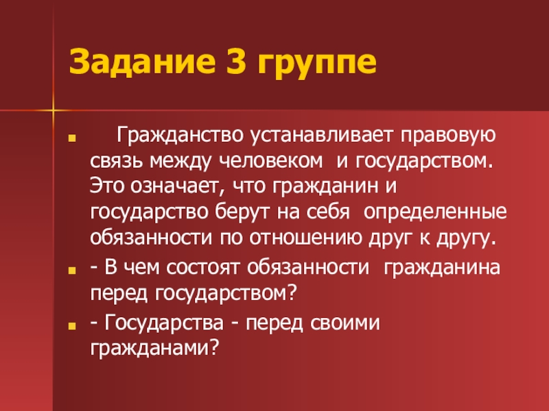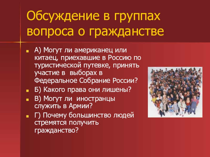 Слайд 10Обсуждение в группах вопроса о гражданстве