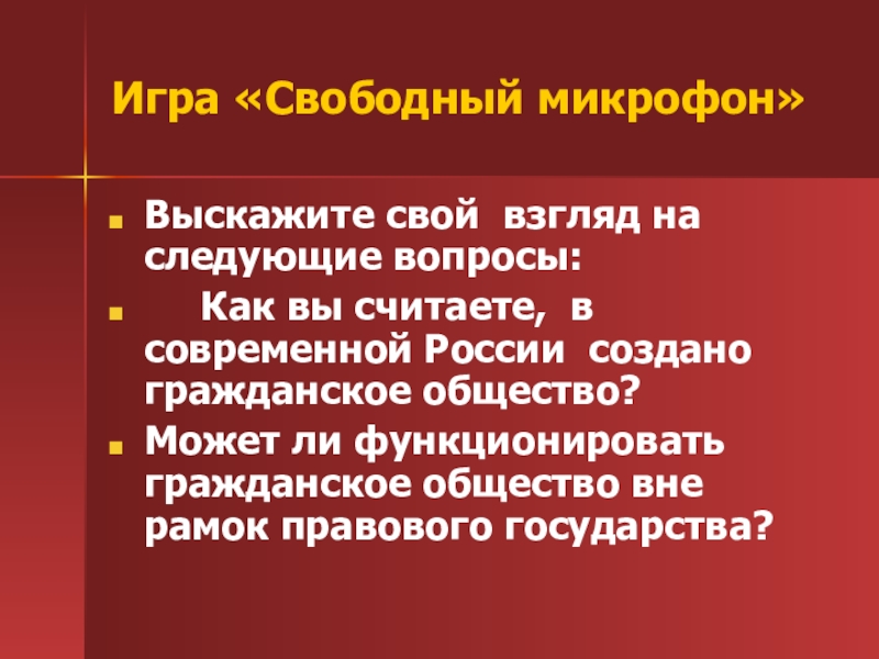 Может ли функционировать гражданское общество вне рамок правового государства?