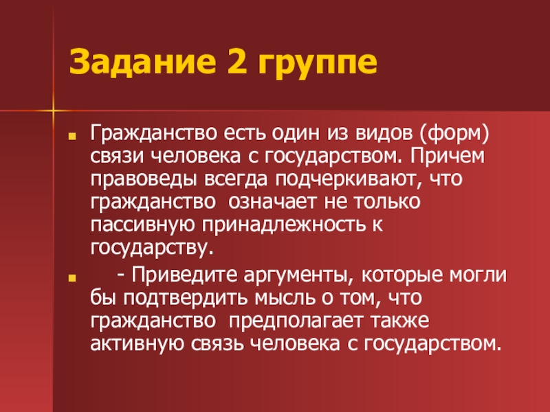 - Приведите аргументы, которые могли бы подтвердить мысль о том, что гражданство предполагает также активную связь человека с государством.