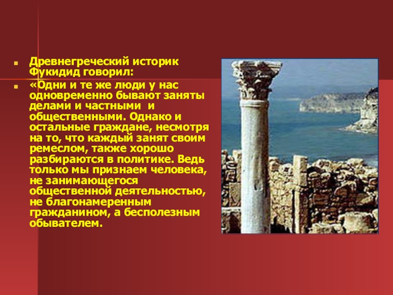 Слайд 8Древнегреческий историк Фукидид говорил:
