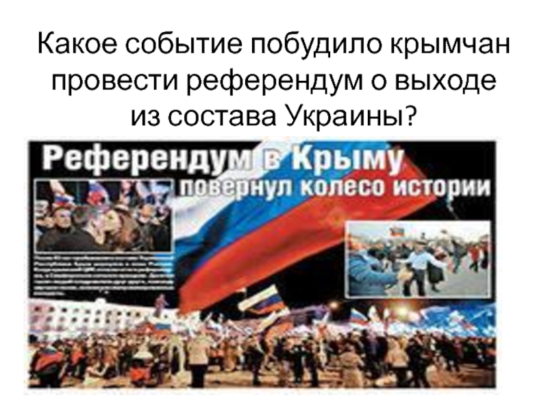 Слайд 3Какое событие побудило крымчан провести референдум о выходе из состава Украины?