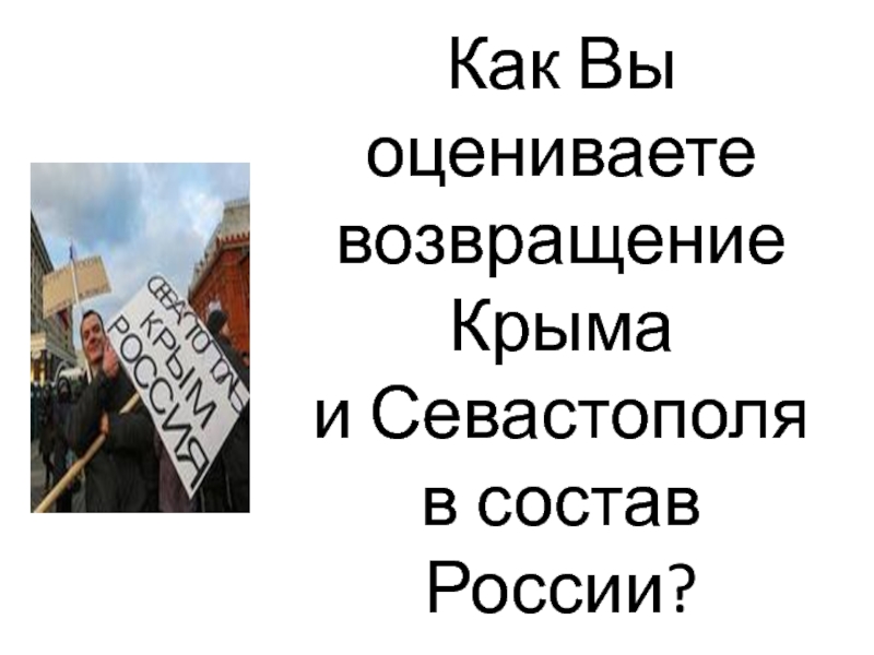 Слайд 9Как Вы оцениваете возвращение Крыма и Севастополя в состав России?