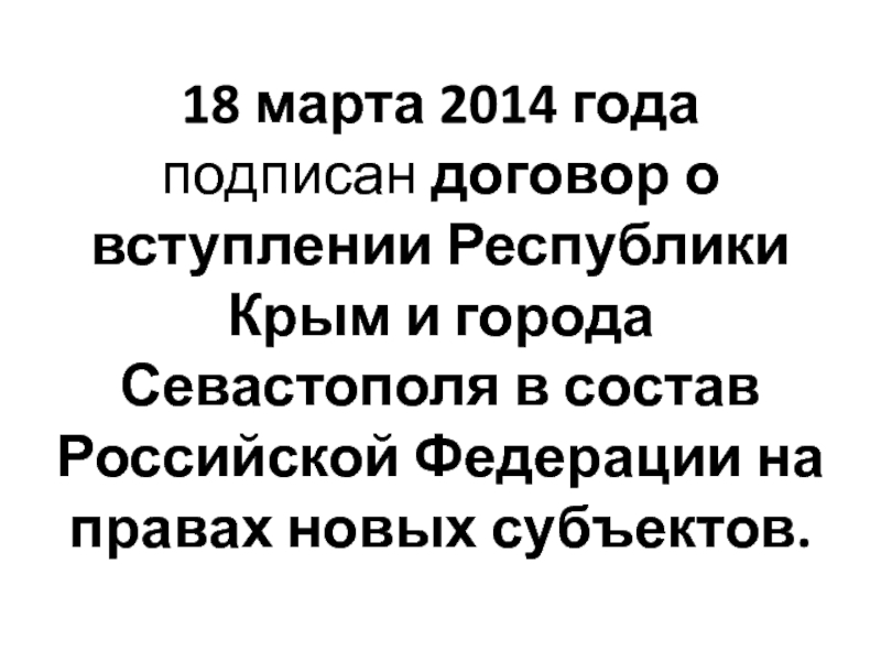 «Республика Крым и город Севастополь –  новые субъекты  Российской Федерации»  Федеральный Конституционный Закон