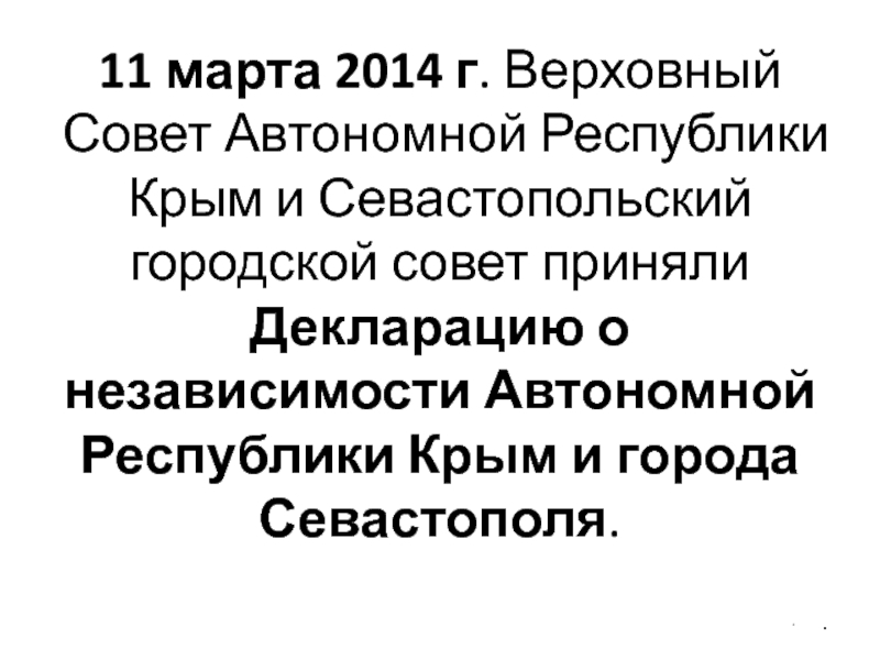 11 марта 2014 г. Верховный Совет Автономной Республики Крым и Севастопольский городской совет приняли Декларацию о независимости