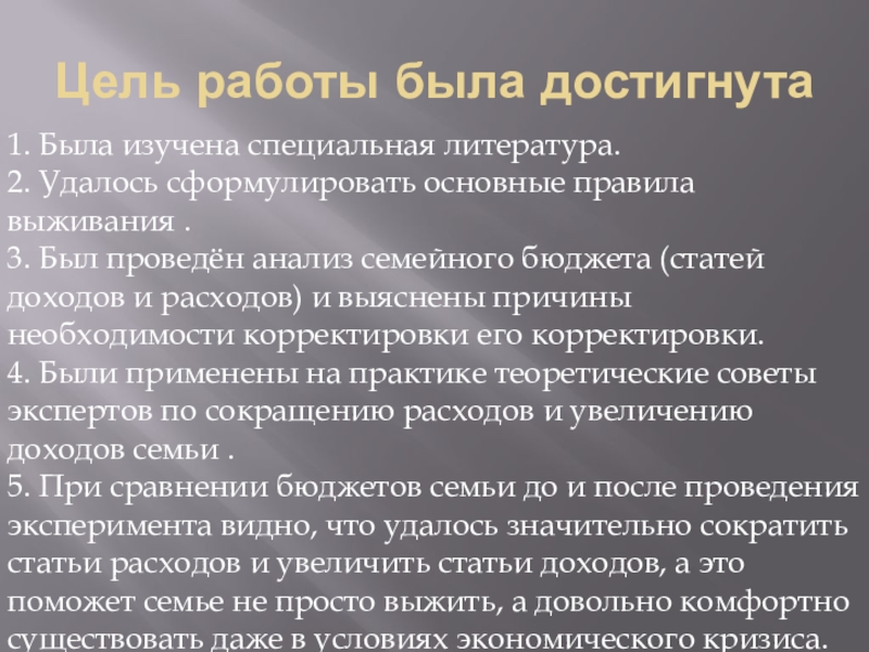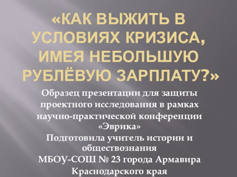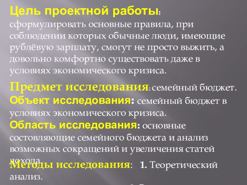 Объект исследования: семейный бюджет в условиях экономического кризиса.