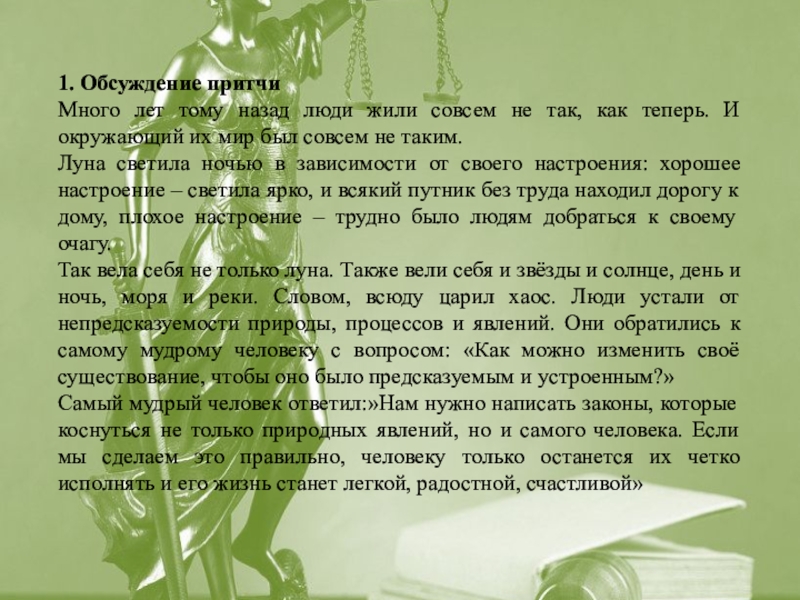 1. Обсуждение притчиМного лет тому назад люди жили совсем не так, как теперь. И окружающий их мир