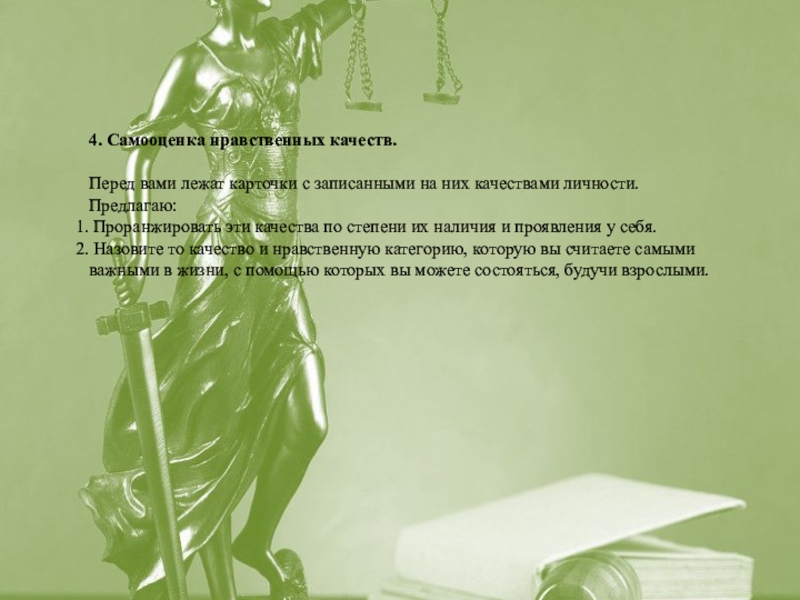 4. Самооценка нравственных качеств.Перед вами лежат карточки с записанными на них качествами личности. Предлагаю: Проранжировать эти качества
