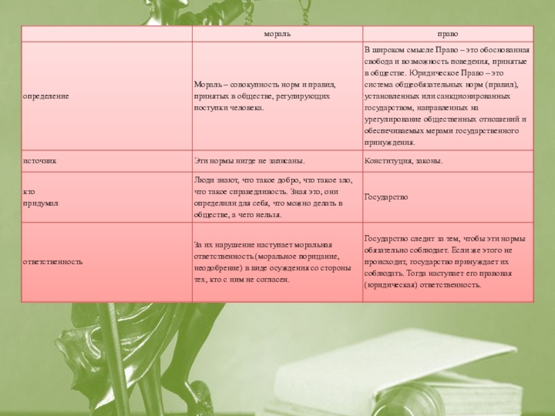 Вы уже должны знать, по каким нормам живет человек в обществе. Есть две нормы жизни: мораль и право. Рассмотрим их отличия.