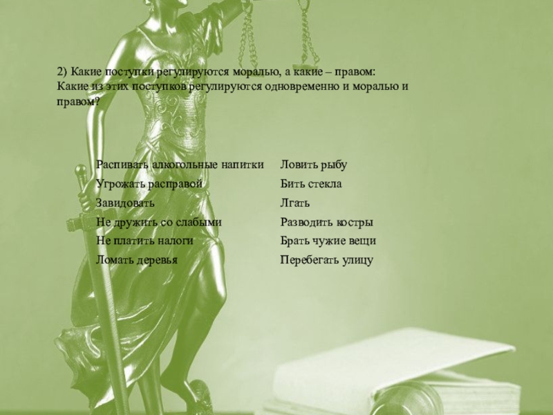 Слайд 72) Какие поступки регулируются моралью, а какие – правом: