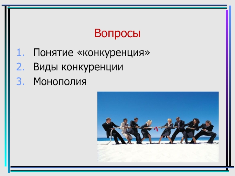 Вопросы Понятие «конкуренция»Виды конкуренцииМонополия