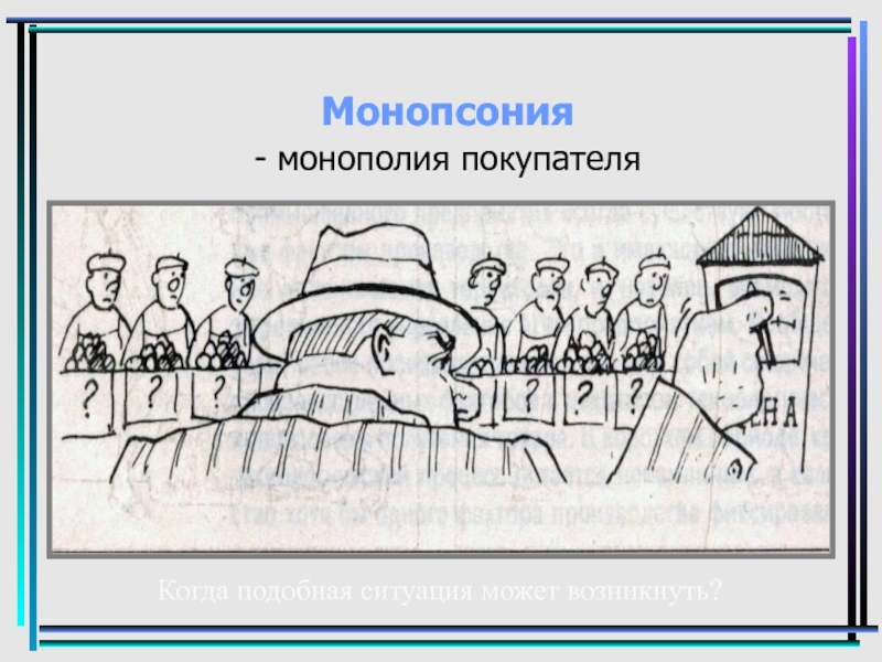 Монопсония- монополия покупателяКогда подобная ситуация может возникнуть?