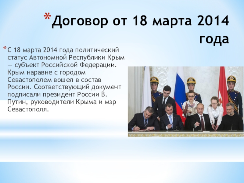 Слайд 19Договор от 18 марта 2014 года