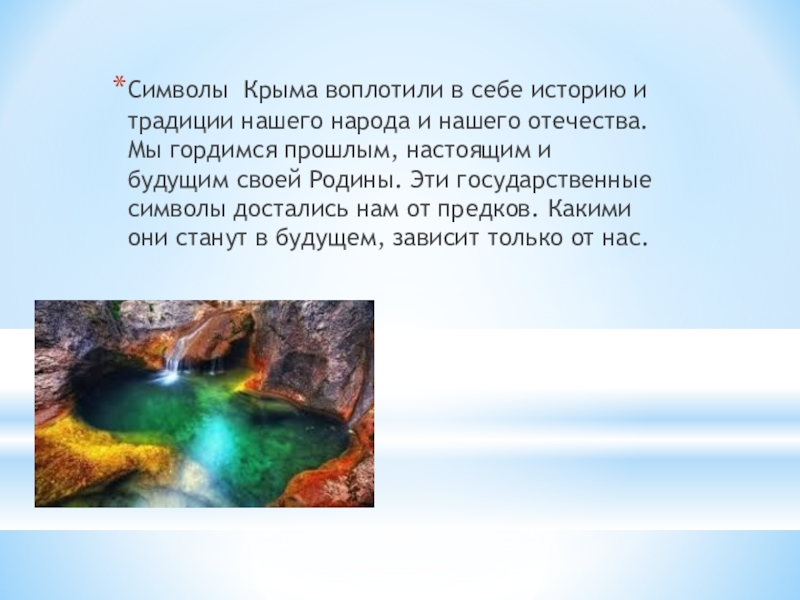 Слайд 21Символы Крыма воплотили в себе историю и традиции нашего народа и