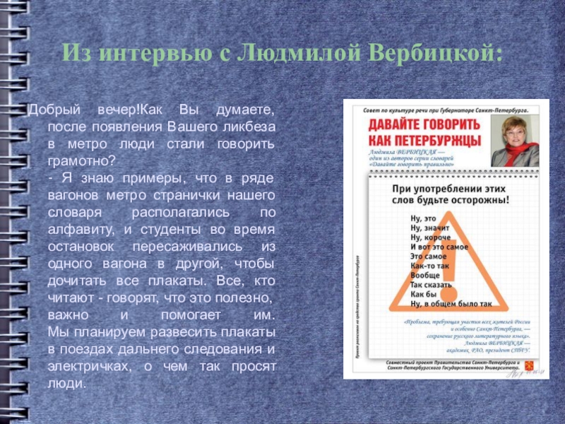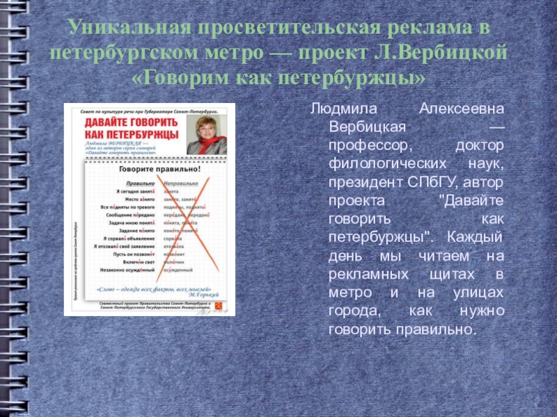 Уникальная просветительская реклама в петербургском метро — проект Л.Вербицкой «Говорим как