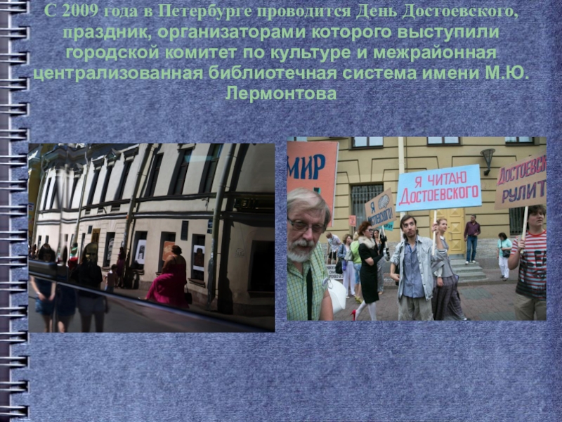Слайд 14С 2009 года в Петербурге проводится День Достоевского,