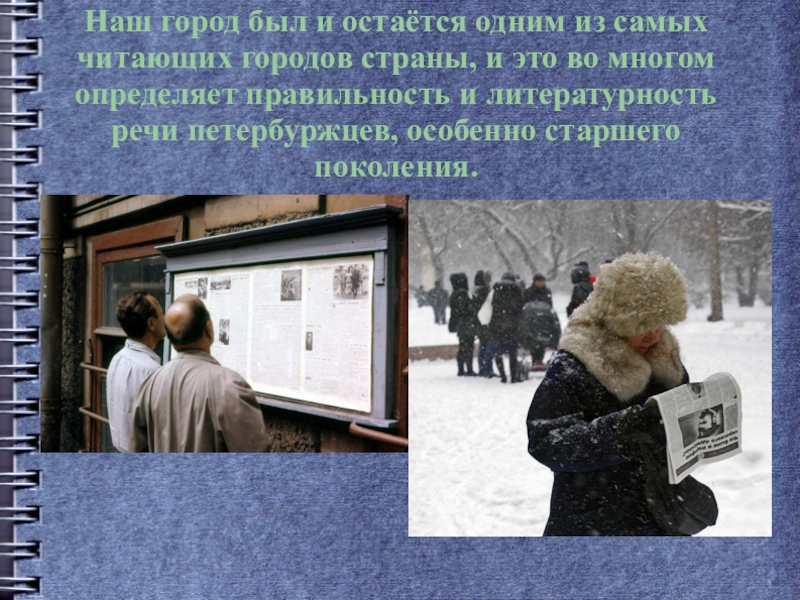 страны, и это во многом определяет правильность и литературность речи петербуржцев, особенно старшего поколения.