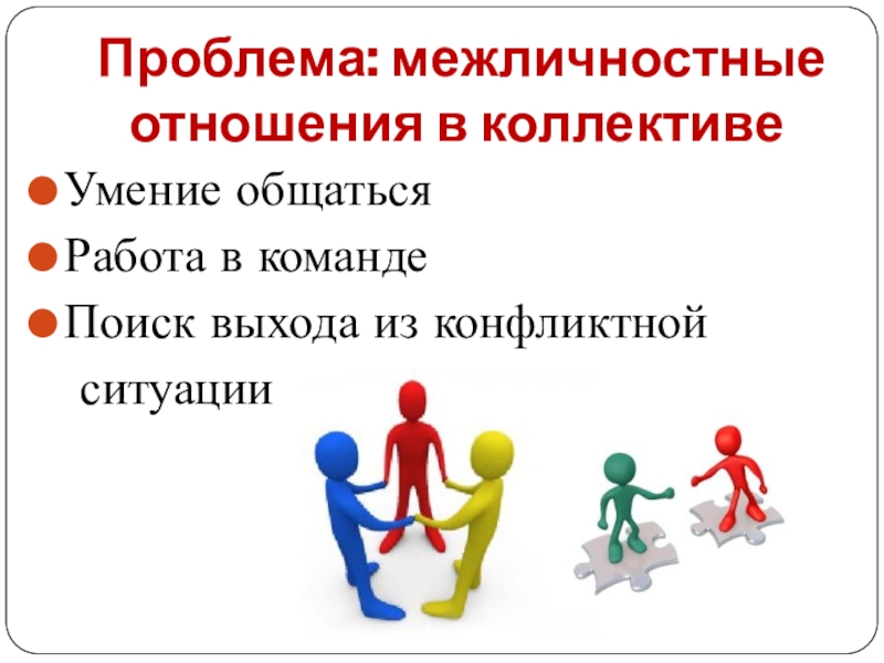 Проблема: межличностные отношения в коллективеУмение общатьсяРабота в командеПоиск выхода из конфликтной ситуации