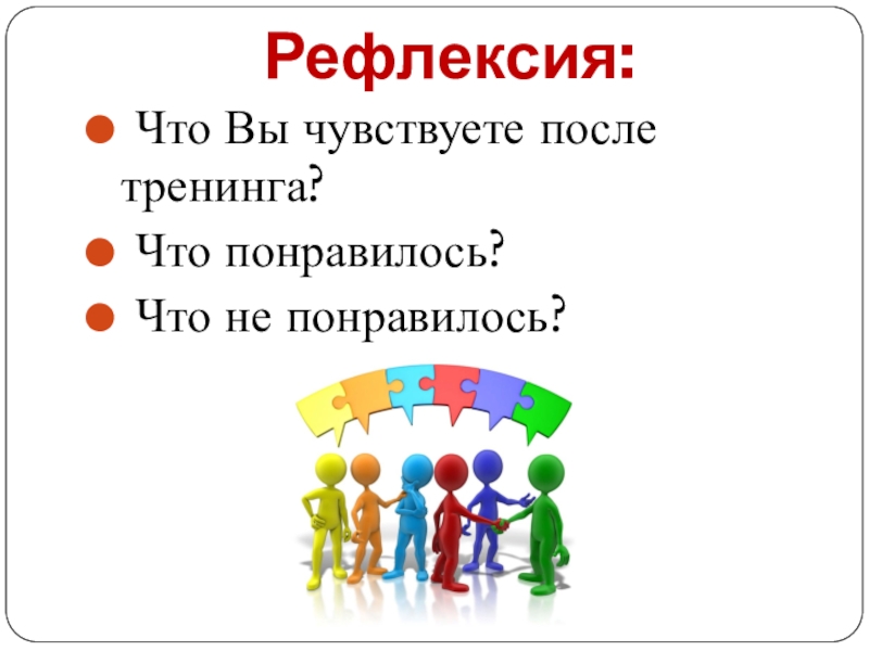 Рефлексия: Что Вы чувствуете после тренинга? Что понравилось? Что не понравилось?