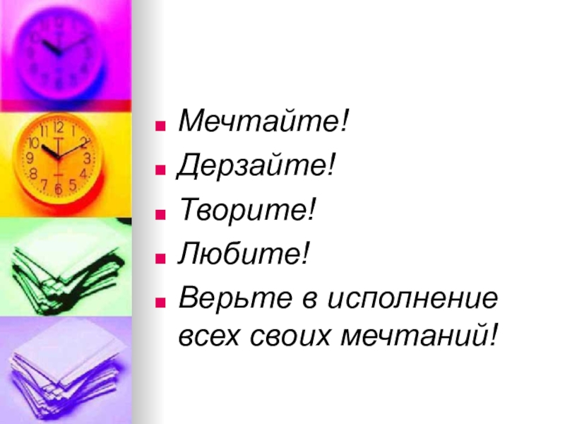 Мечтайте!Дерзайте!Творите!Любите!Верьте в исполнение всех своих мечтаний!