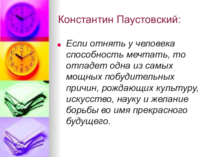 Константин Паустовский:Если отнять у человека способность мечтать, то отпадет одна из самых мощных побудительных причин, рождающих культуру,