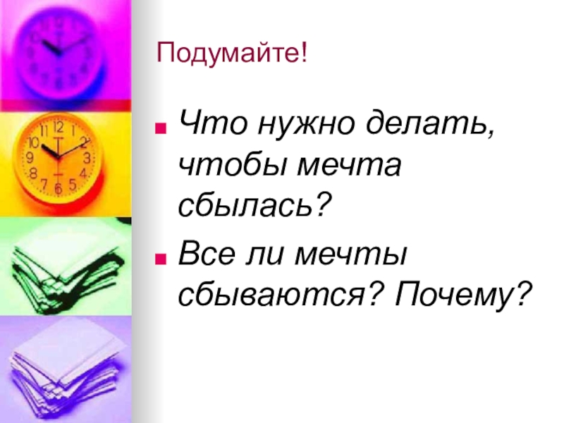 Подумайте!Что нужно делать, чтобы мечта сбылась?Все ли мечты сбываются? Почему?