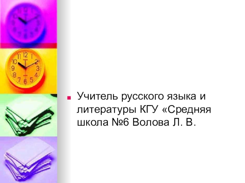 Учитель русского языка и литературы КГУ «Средняя школа №6 Волова Л. В.