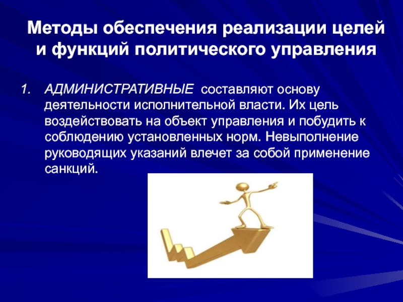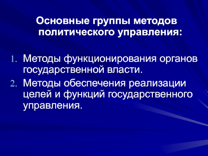 Слайд 7Методы обеспечения реализации целей и функций политического управления