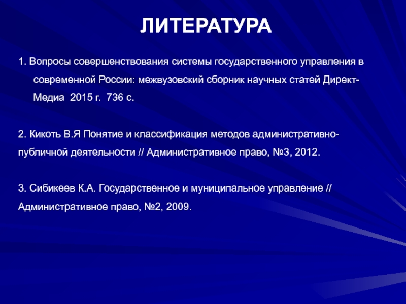 2. Кикоть В.Я Понятие и классификация методов административно-публичной деятельности // Административное право, №3, 2012.