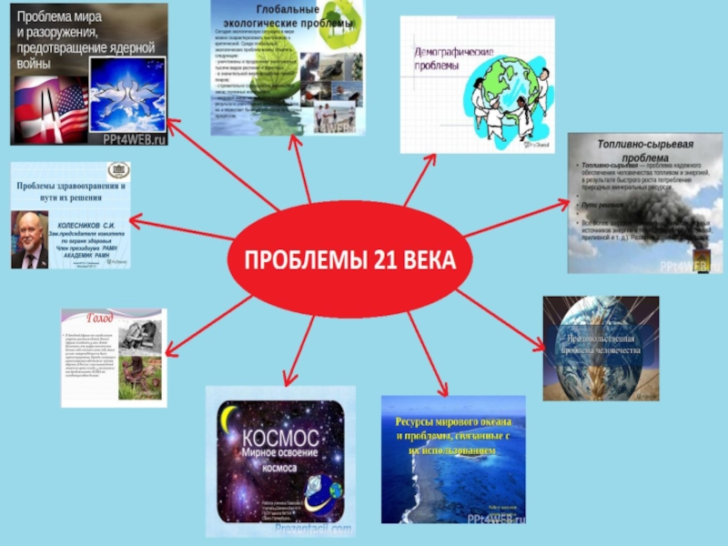 глобальных жизненно важных проблем существования цивилизации на планете. Среди этих проблем: - проблемы мира и разоружения; - экологические проблемы; - демографические; - топливно-сырьевые; - продовольственные; - проблемы использования ресурсов мирового океана; - проблемы мирного освоения космоса; - проблемы преодоления голода; - проблемы здравоохранения