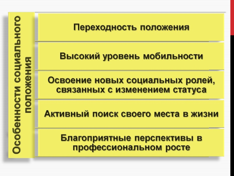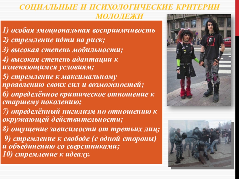 (приблизительно от 16 до 25-30 лет), особенностей социального положения и определенных социально-психологических качеств.