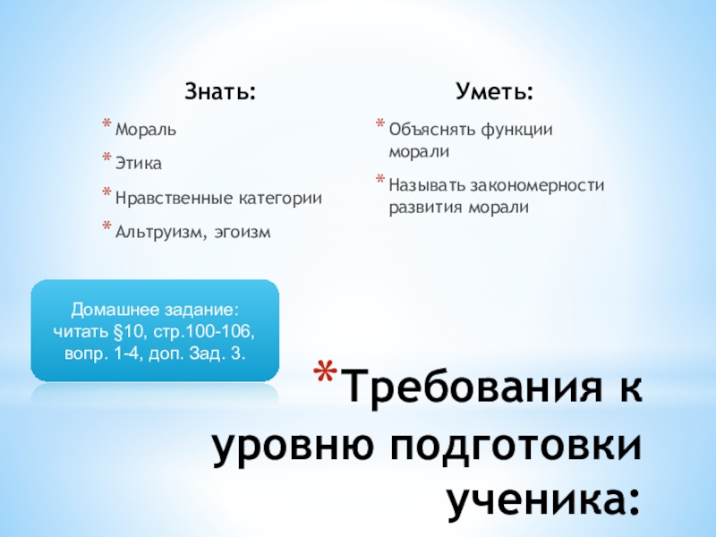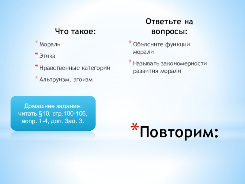 Домашнее задание: читать §10, стр.100-106, вопр. 1-4, доп. Зад. 3.