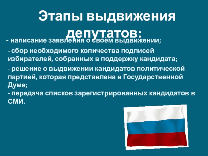 - решение о выдвижении кандидатов политической партией, которая представлена в Государственной Думе;