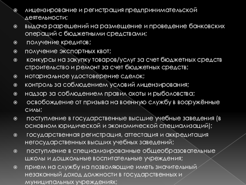 Слайд 11лицензирование и регистрация предпринимательской деятельности;