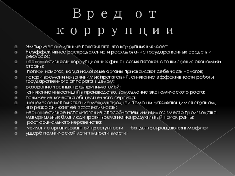 неэффективность коррупционных финансовых потоков с точки зрения экономики страны;