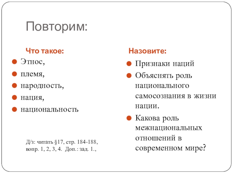 Д/з: читать §17, стр. 184-188, вопр. 1, 2, 3, 4. Доп.: зад. 1.,
