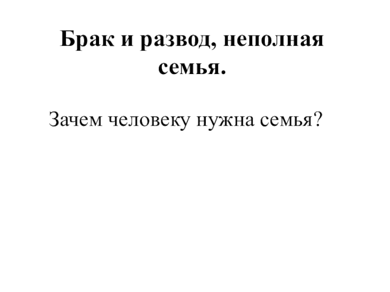 Брак и развод, неполная семья.Зачем человеку нужна семья?