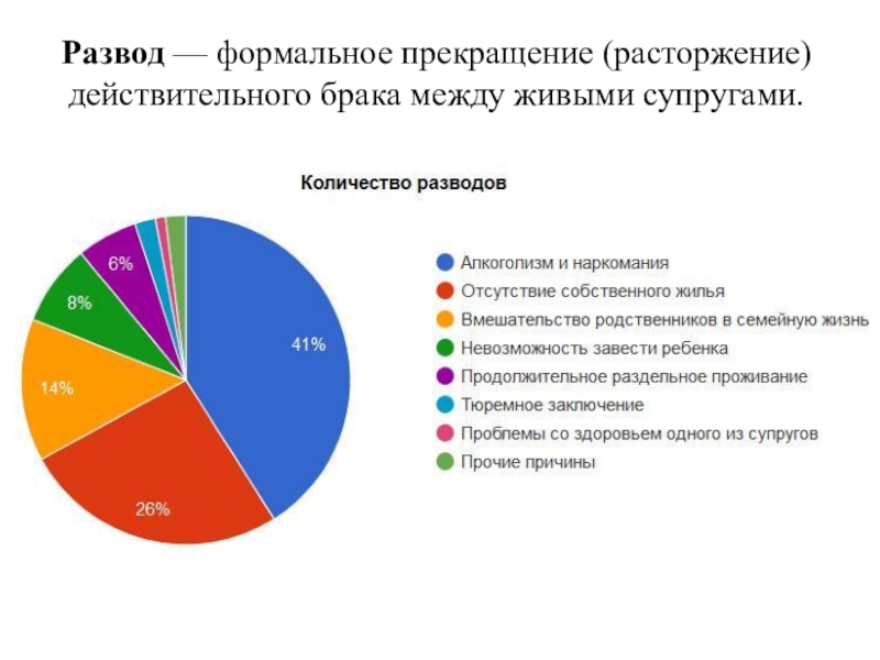 Слайд 10Развод — формальное прекращение (расторжение) действительного брака между живыми супругами.